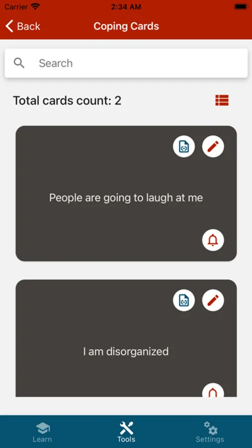 - Coping Cards