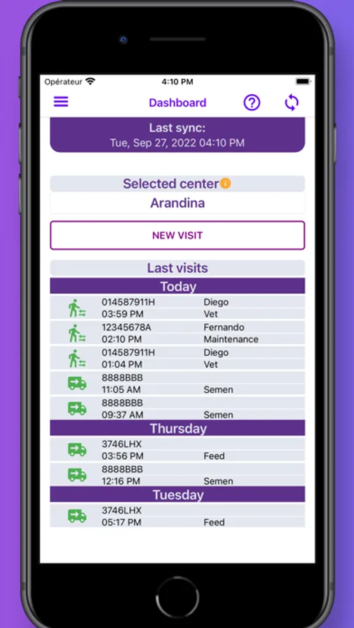 - Know all visits (people and vehicles) that are made to all your centers (farms, slaughterhouse, feed mill, etc.)