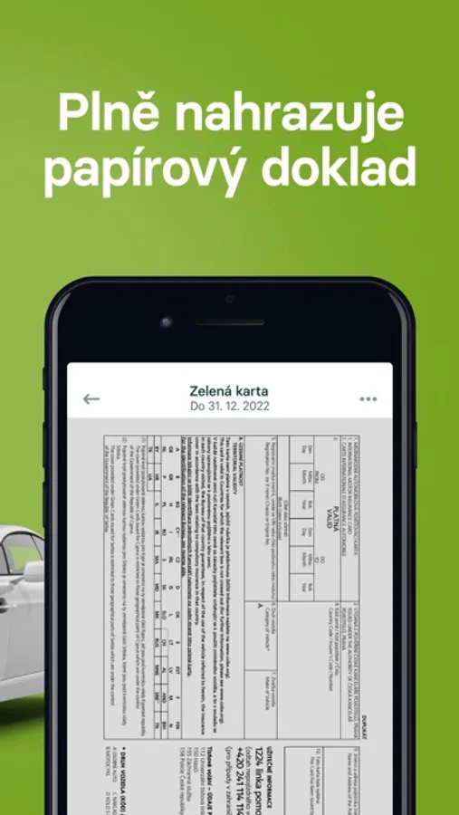- Jednoduše v aplikaci vyfoťte zelenou kartu od svého vozu,