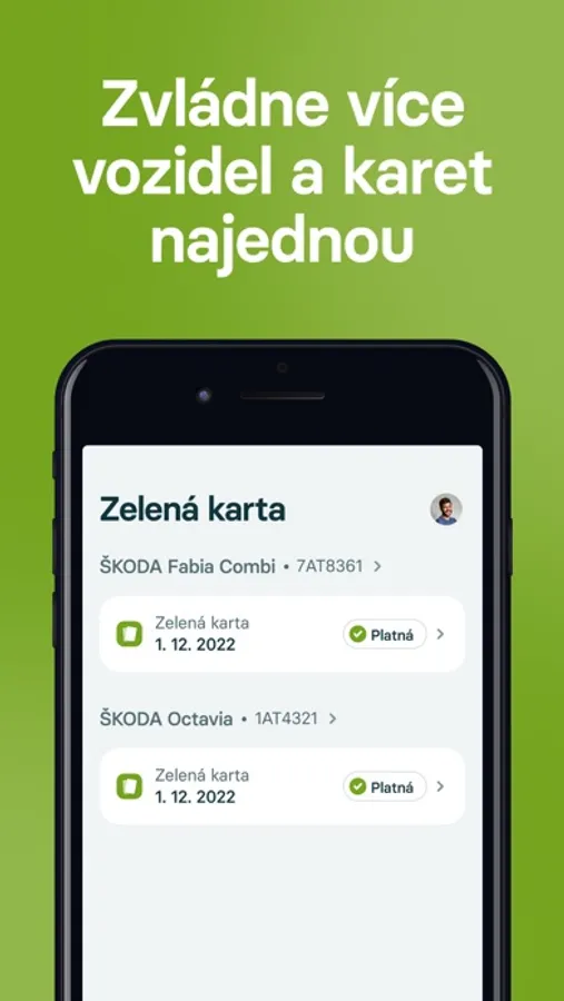 Řídíte více vozů? Není problém! Nahrajte si zelené karty od každého z nich a mějte je vždy po ruce.