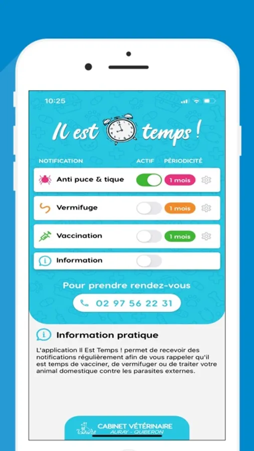 Application permettant de recevoir des notifications régulièrement afin de vous rappeler qu'il est temps de vacciner, de vermifuger ou de traiter votre animal domestique contre les parasites externes.