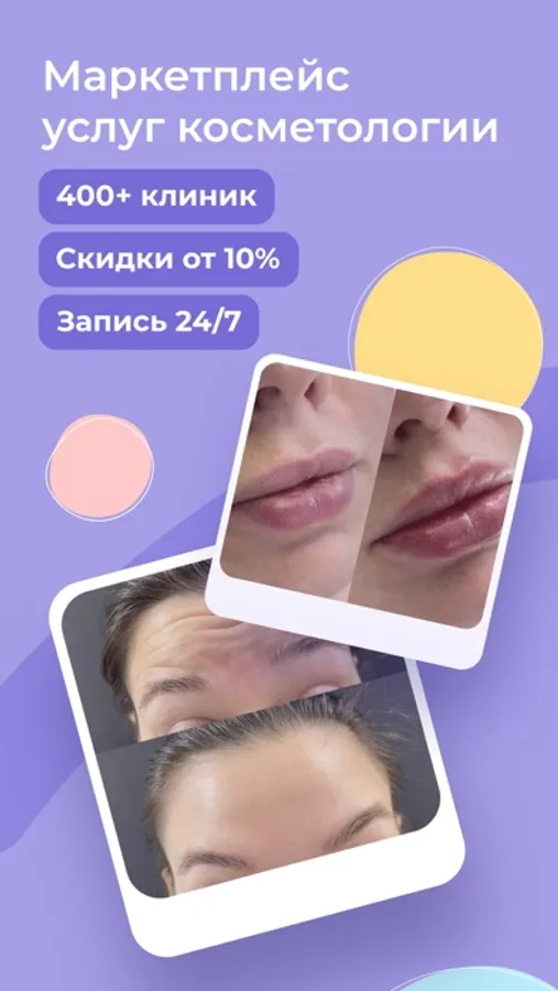 Фотографии реальных людей до и после разных процедур, которые размещают врачи. Посмотреть их можно в специальном разделе “До/после”.