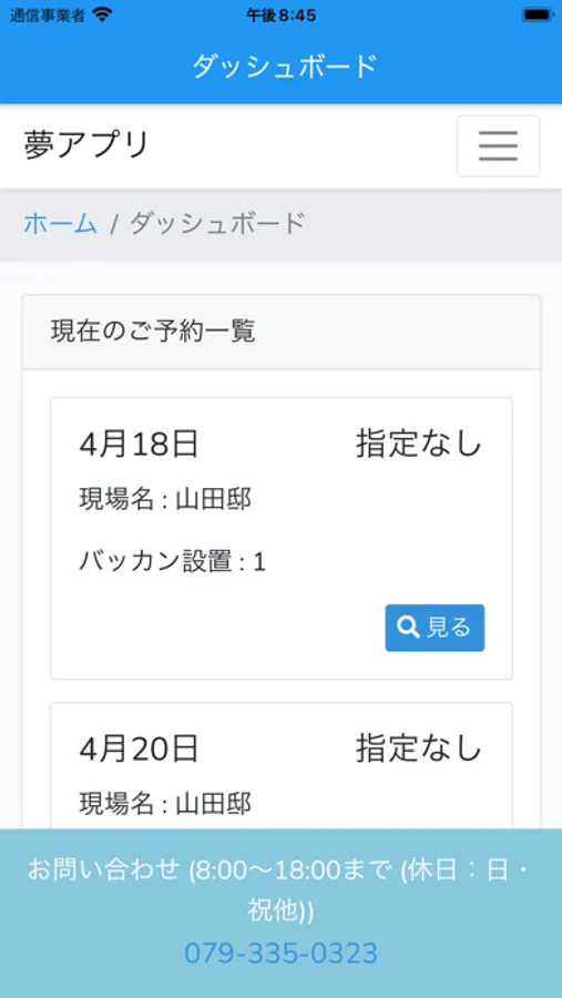 予約した設置・回収作業後の作業報告をご確認いただけます。