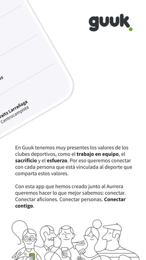 Con la creación de esta aplicación, en Guuk queremos hacer lo que mejor sabemos: Conectar. Conectar con la afición. Conectar con las personas. Conectar contigo.