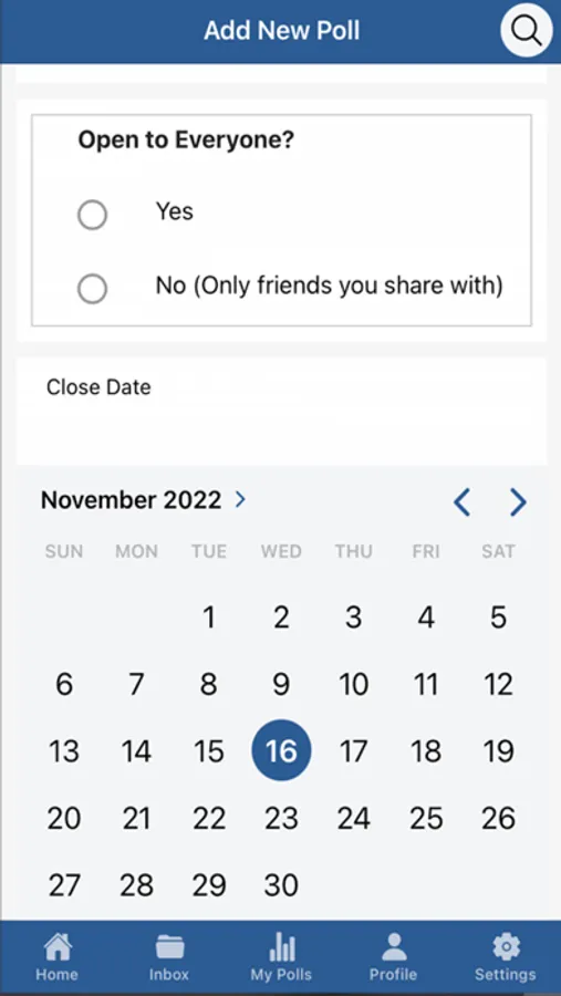 You can choose to share your polls with “Everyone” or with “Only your Friends”. When sharing with “only your friends”, you decide who will be able to see the polls.
