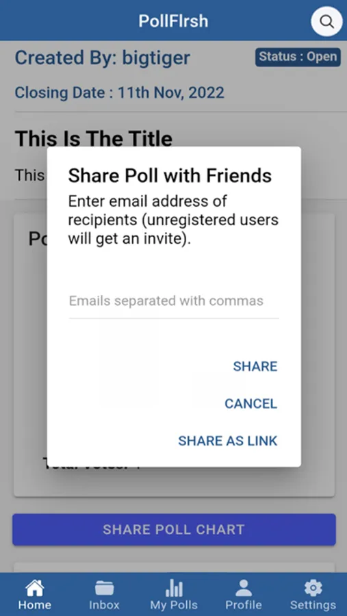 Each poll has its url/link. You can share a poll by simply send this link to your friend via any chat app.