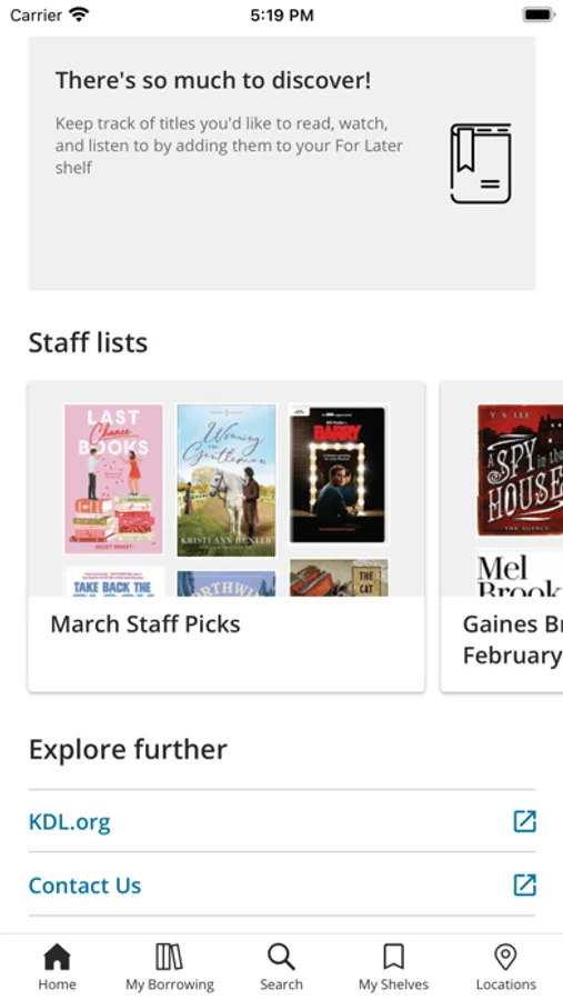 Use the Kent District Library app to discover new titles, plan your next visit and browse recommendations curated by your library staff. You can manage your account, see events and locations, and contact us.