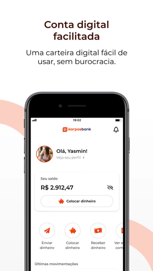 Com sua conta digital, você pode controlar suas finanças sem burocracia e direto do seu celular. Acompanhe saldos e extratos 24 horas por dia, 7 dias por semana, 365 dias por ano. Realize transferências de forma rápida, segura e fácil.