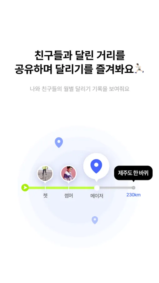 앱 내에서 친구들과 연결되어, 서로의 러닝 활동을 확인하고 응원할 수 있습니다. 또한, 내가 달릴때 친구들로부터 응원을 받을 수 있어, 달리기가 더욱 재미있고 동기부여도 높아집니다.