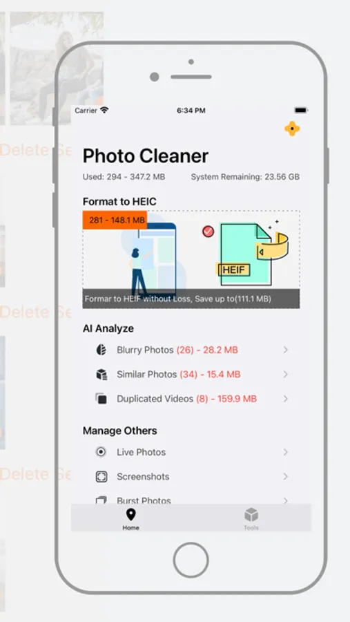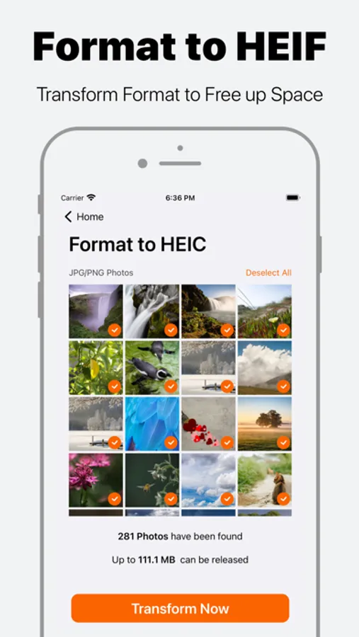 - Automatically identify all photos in your Photo Album that can be transformed to HEIF Format