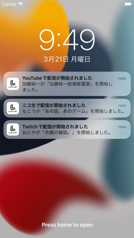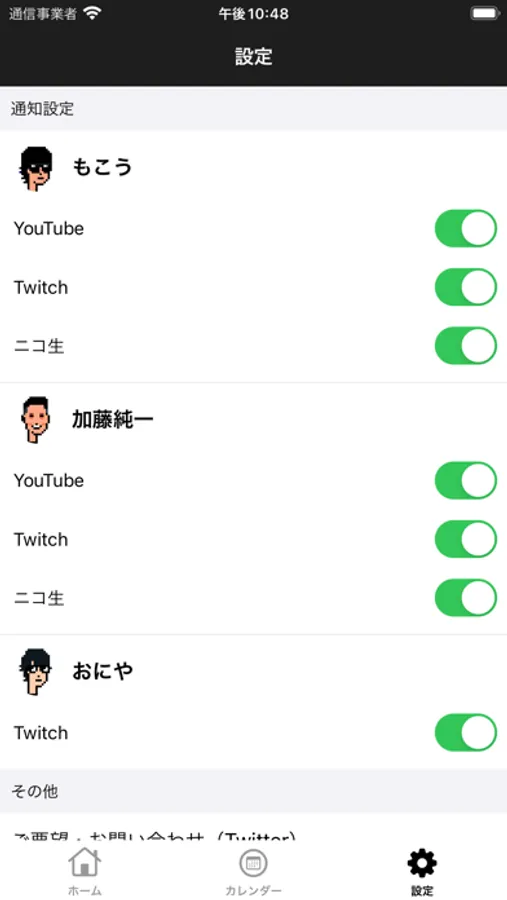 YouTube, Twitch, ニコニコ生放送のアプリ通知OFFのまま、配信通知を受け取り、煩わしい通知から解放されます。