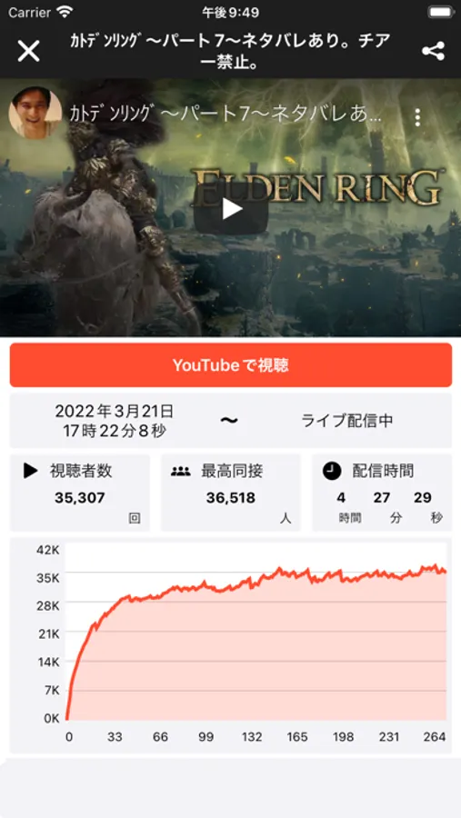 同時接続数の推移を確認することで、盛り上がったシーンをしっかり見ることができます。