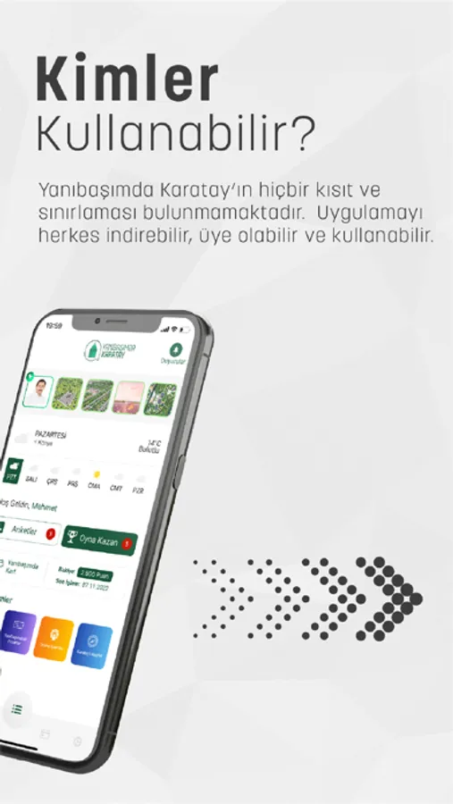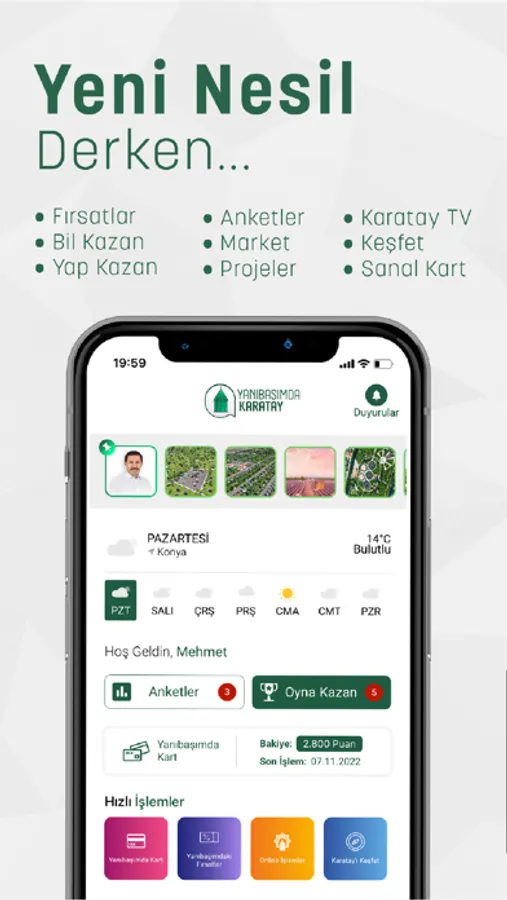 Vatandaşlar vergi ödeme, imar durumu sorgulama ve çeşitli başvuru işlemlerini gerçekleştirmenin yanı sıra görevler, yarışmalar, anketler, fırsatlar ve sürpriz kutu gibi çeşitli kurgular ile puan kazanabilmekte ve kazanılan bu puanlar ile uygulama içerisinde yer alan online alışveriş bölümünden çeşitli ürünleri herhangi bir ücret ödemeden sipariş verebilmektedirler.