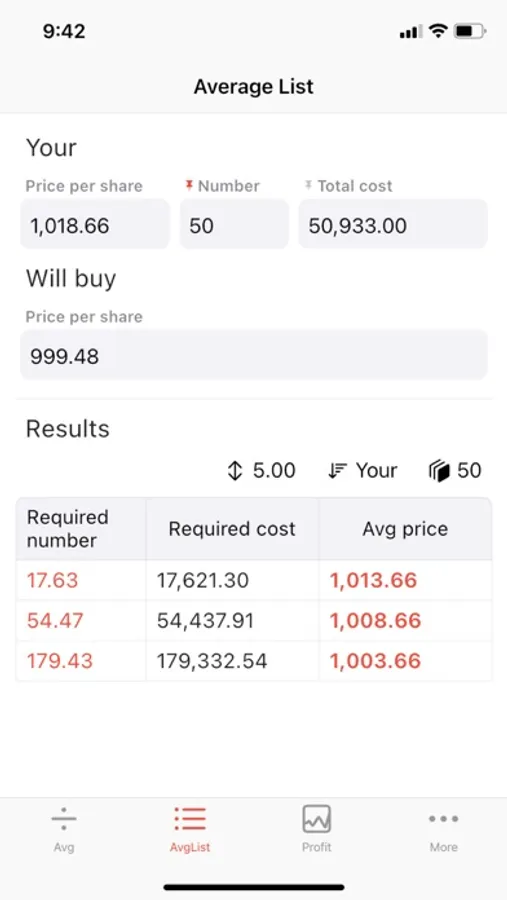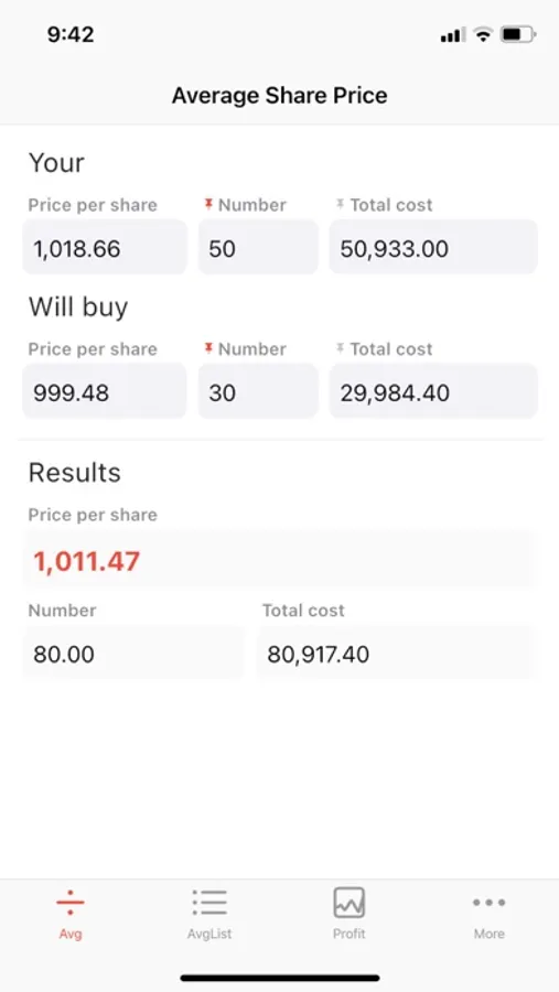 - Calculate the average stock price based on the current stock holdings and the stock to be purchased.