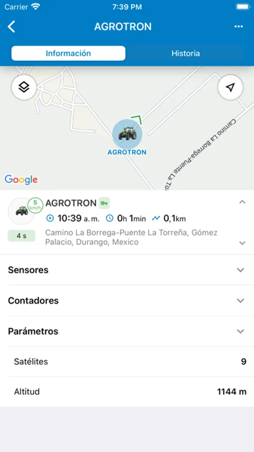 - Modo de seguimiento. Controle la ubicación exacta de la unidad y los parámetros -recibidos de la unidad.