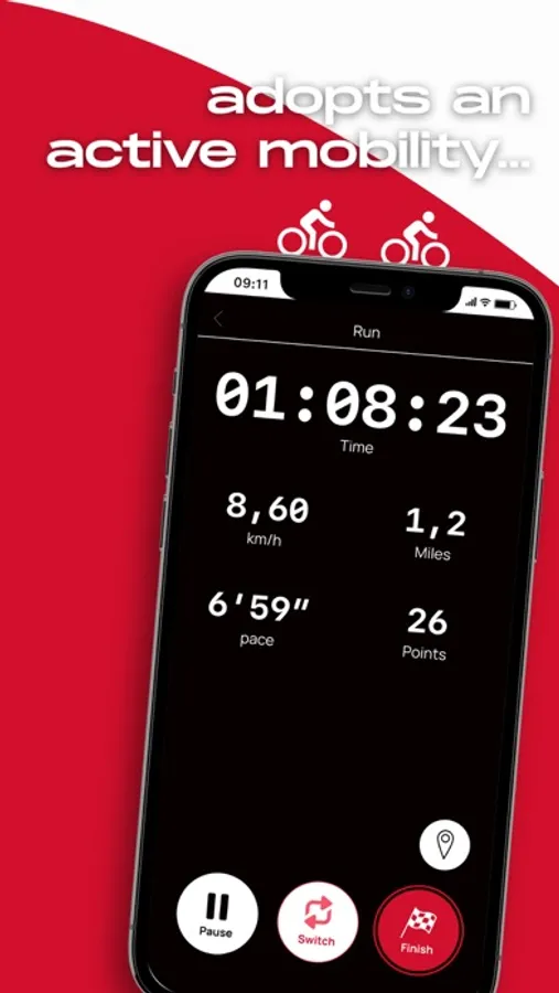 The aim is to earn points for you and your team by doing physical activity (walking, running, cycling, etc.), by winning individual or team missions, and by answering “Health Questions”.