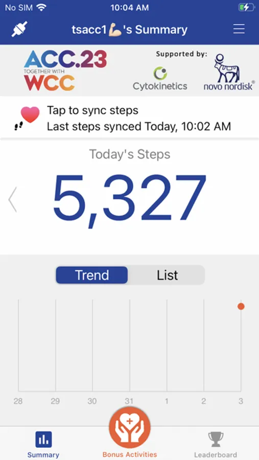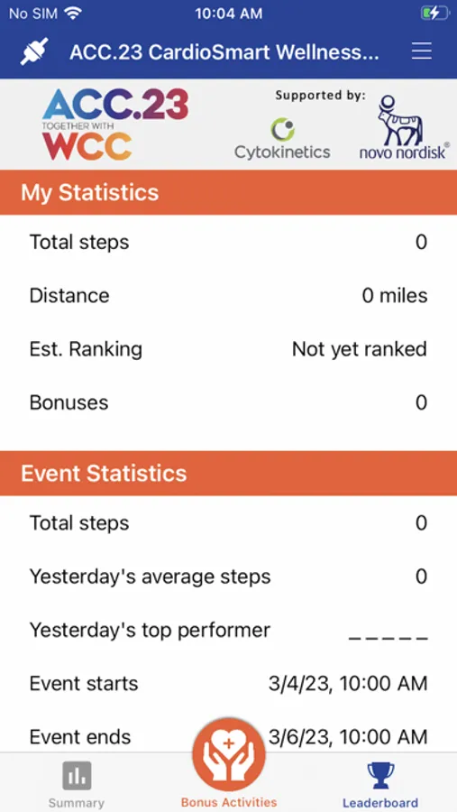 This app is for use in the ACC.23/WCC CardioSmart Wellness Challenge which will be held on March 4-6, 2023 in New Orleans. The ACC.23 Wellness Challenge encourages participants to walk and engage in some friendly competition with peers. The app imports step data from Fitbit, Garmin, and, via our integration with the Apple Health App, step data from Apple Watch and the step tracker integrated into your iPhone.