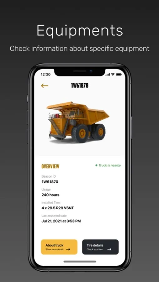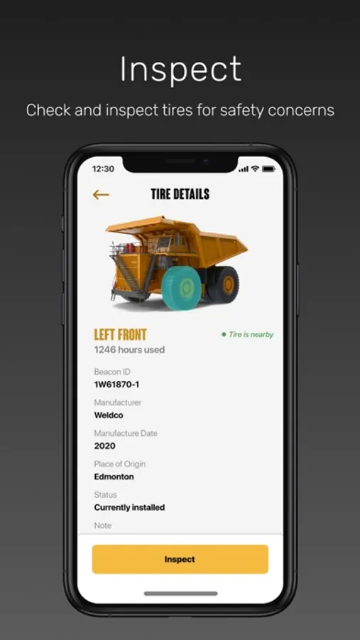 Smart Tire - A Tire Management App for the Mining and Industrial Market. Track your industrial Tires hours, usage, machine usage. Easy Tire Inventory Management using Bluetooth by attaching a BLE Smart Tag inside each unit you can track it life on your mine or construction site.