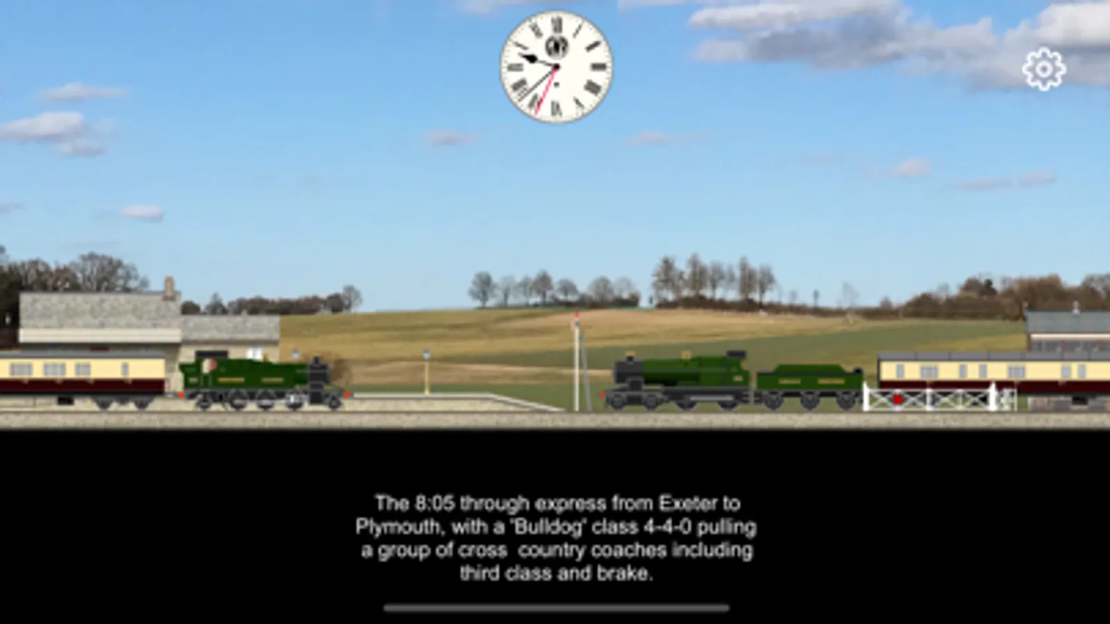 There are different railway scenes - a busy city terminal, a small country station, a shunting yard, etc.