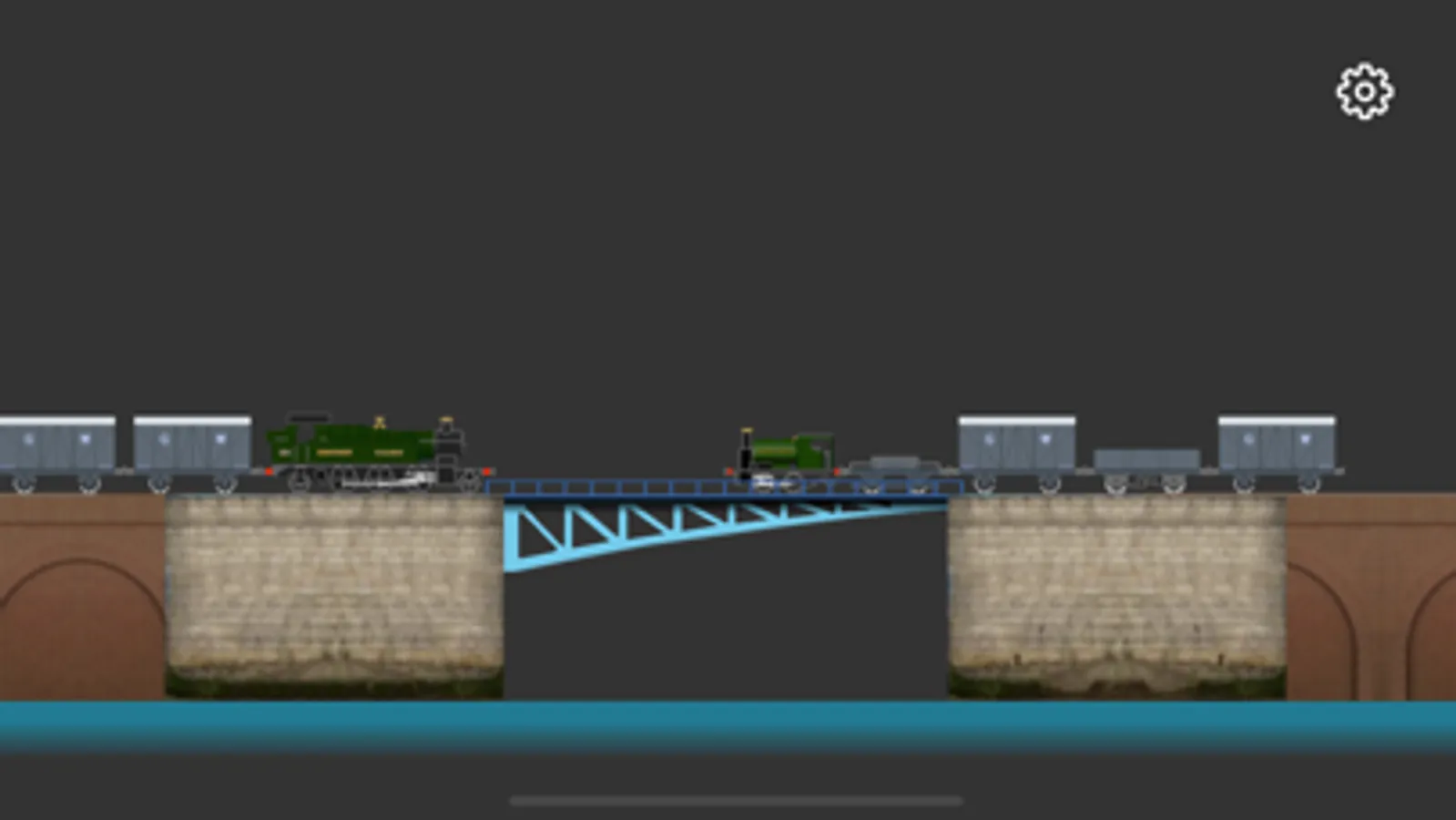 Displays trains in 2D that move back and forth across the screen.