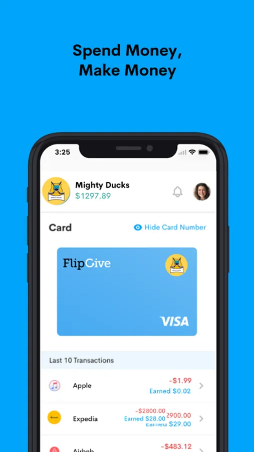 FlipGive banking is a banking app and cashback debit card built for teams. No monthly fees. Centralize team spending while earning cashback on every purchase, all season long.