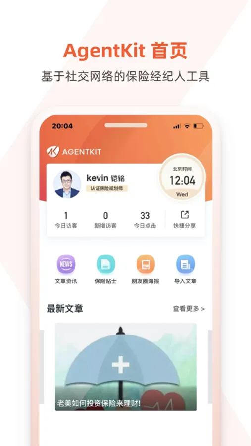 AgentKit 是基于社交网络的保险经纪人工具平台,主要功能有:定制网站、客户服务、个人Branding展示,我们致力于为每一个渴望成功的经纪人提供一站式营销和服务解决方案