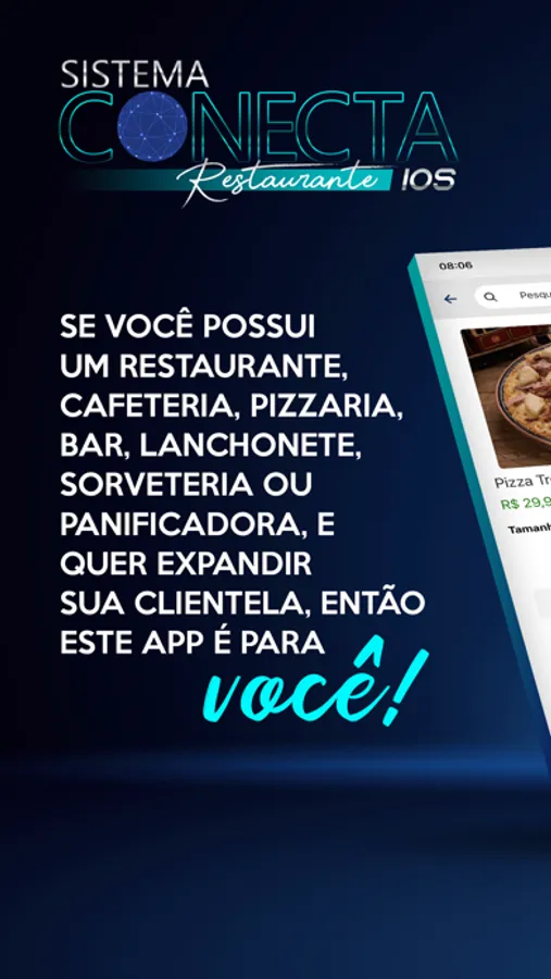 O Conecta Restaurante é uma extensão da plataforma Conecta, que possibilita a compra online em restaurantes confiáveis próximos a você.