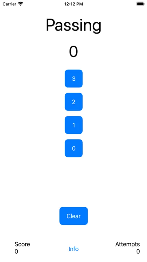 Passing is a statistics passing app for volleyball. Instead of a complex application used to stat entire games or matches. The Passing app was designed with a purpose to be used in practice and minimize the amount of time spent searching and pressing buttons. It is quick and easy to use. It can be used to track an entire team or individual during a specific drill. It does not save any data. Once you clear the scores, it starts all over. The Passing app keeps track of the total passing score and the number of attempts and calculates a passing average.