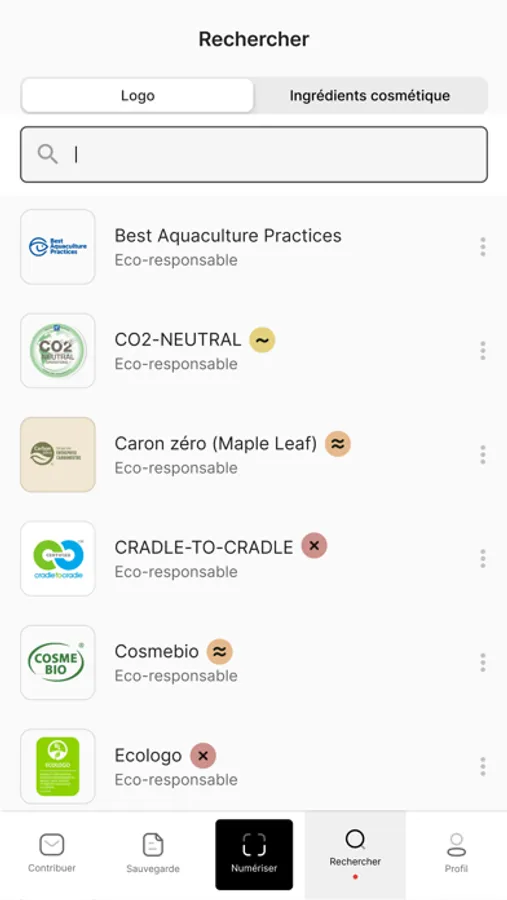 - Consultez le répertoire pour un accès rapide aux ingrédients ou aux écoétiquettes que vous recherchez.