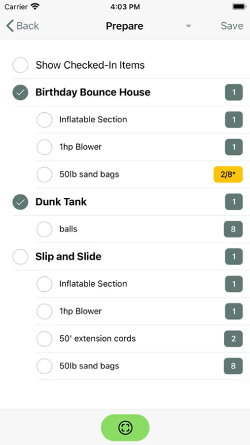 View and check in Packing List