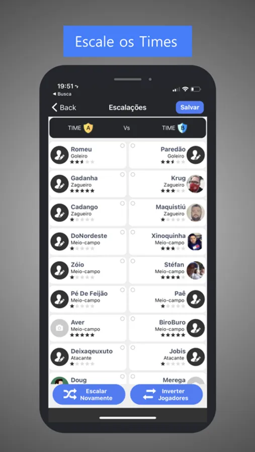 -Realize sorteios e gere times justos, levando em conta preparo, velocidade e habilidade.