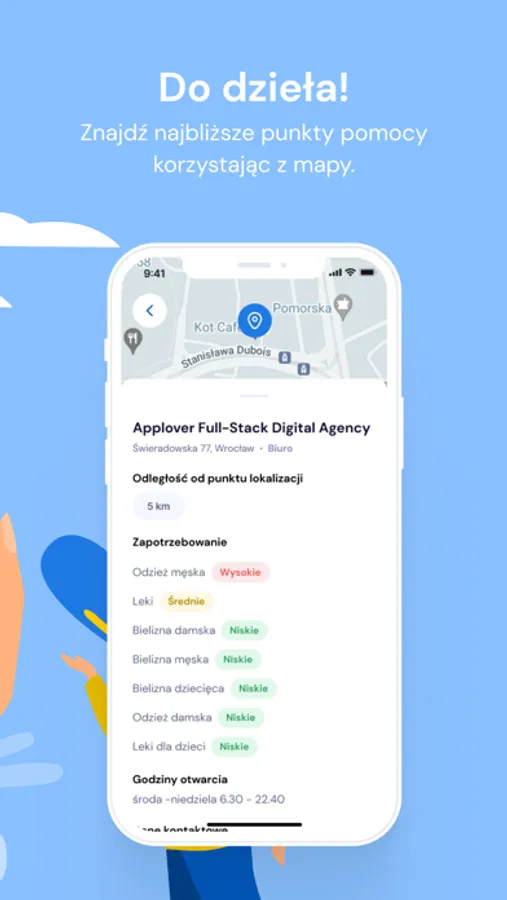 W świetle ostatnich wydarzeń wszyscy chcemy pomóc w każdy możliwy sposób. W związku z tym pojawiło się wiele miejsc, gdzie można dostarczyć artykuły, które będą przydatne Ukraińcom. Przez brak jasnych informacji, jakie produkty są najpotrzebniejsze, wiele z nich jest dostarczanych w nadmiarze, przez co nie może być w pełni wykorzystana. Dzięki tej aplikacji wszystkie punkty pomocy znajdziesz w jednym miejscu wraz z informacją. Ponadto koordynatorzy poszczególnych punktów mogą oznaczyć, które artykuły są pilnej potrzeby dzięki czemu osoby chcące pomóc dostają jasną informację, co dokładnie jest potrzebne i co należy dostarczyć.