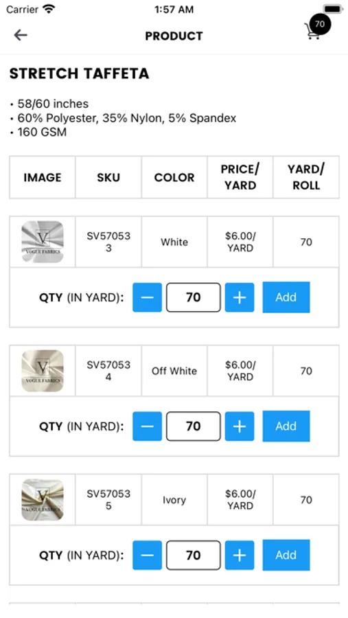Vogue Fabrics Inc. is a fabric wholesaler located in New York. For over 40 years, Vogue Fabrics has been manufacturing a variety of fabrics including but not limited to; satin, voile, lining, velvet, broadcloth and many more. We provide our clients with high quality fabrics at competitive prices and impeccable service. Our number one priority is to ensure your orders are fulfilled in the most professional manner. Vogue Fabrics’ 40,000 square foot warehouse located in Long Island, NY can efficiently prepare and fulfill orders of any size using a range of trusted freight companies to ensure a smooth transaction. All our fabrics are manufactured in our overseas factory and pass a rigorous inspection process in order to maintain a superior level of quality. Call us at the number below to get in touch with our sales office.