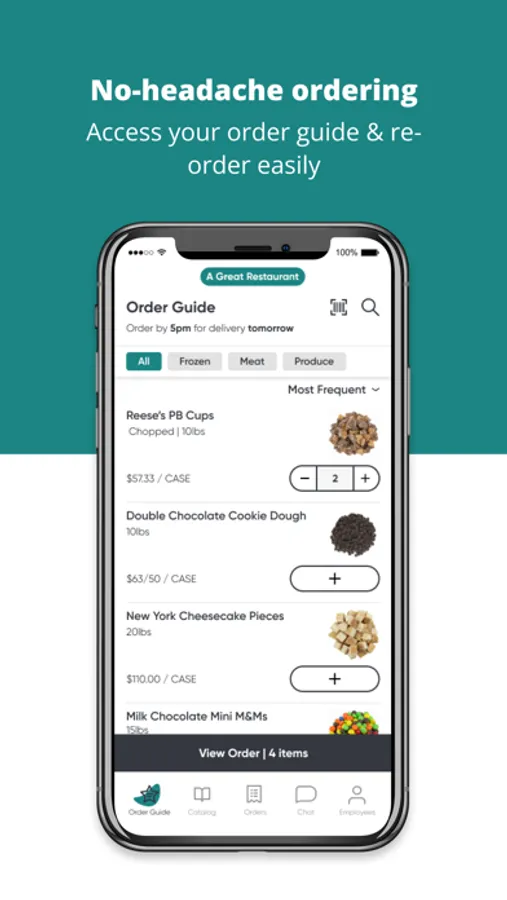 Our mobile app lets you search our complete product catalog, manage and update your ordering guide, and buy what you need at the moment you need it. It’s part of our commitment to giving you an ordering experience you’ll love.