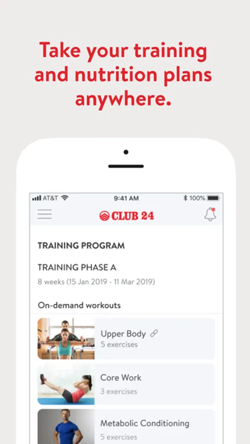 With the Club 24 app, you can start tracking your workouts and meals, measuring results, and achieving your fitness goals, all with the help of your personal trainer.