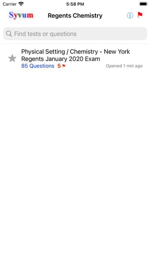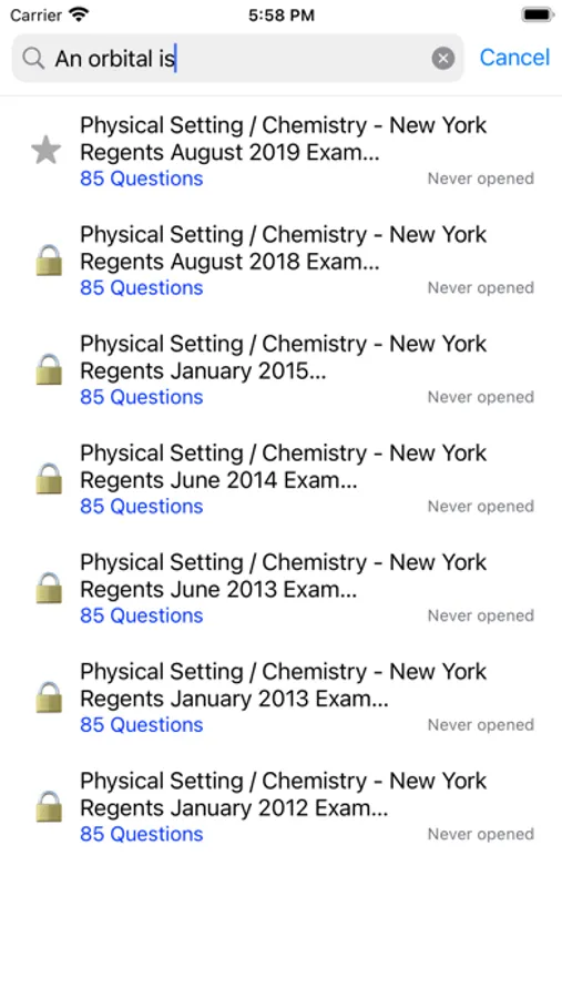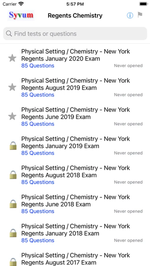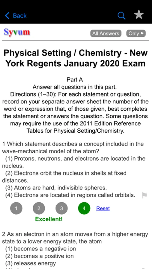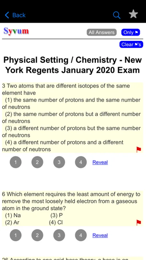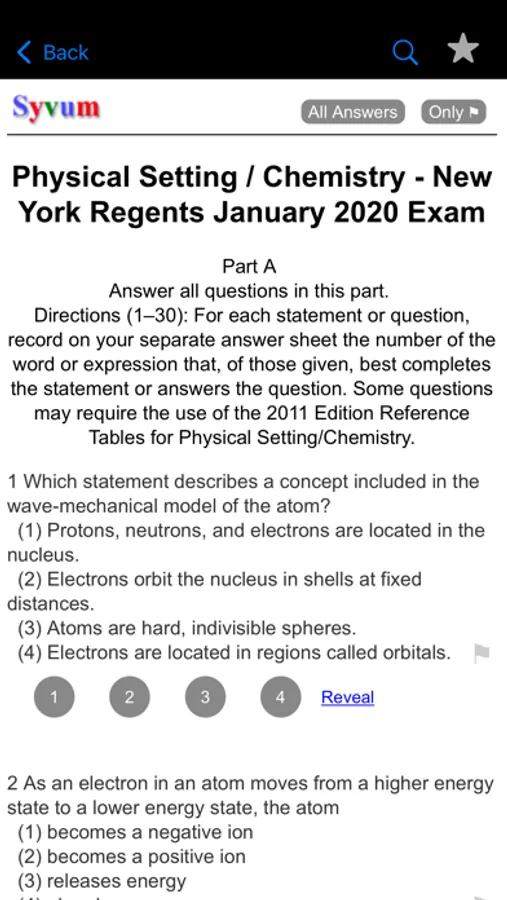 This app makes it easy to review or study for your Chemistry - Physical Setting, New York Regents exam. Solve entire exams or a few questions at a time. You can flag questions for a review later on, or star an exam to mark it as important.