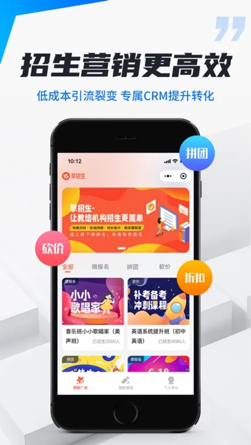 招生工具:提供微官网、掌招生等招生工具,三分钟策划活动方案,招生又快又简单。