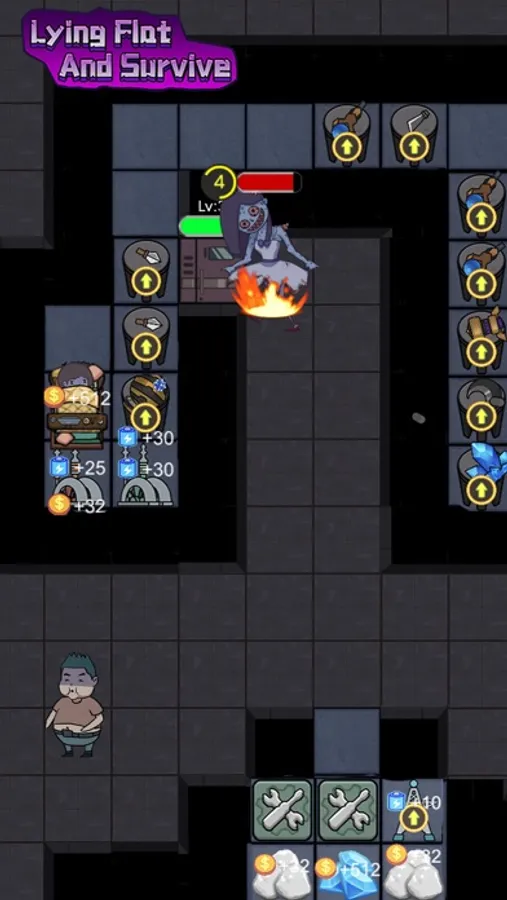 In the game, players need to avoid the pursuit of fierce ghosts, find suitable dormitories, develop economy, build forts and resist fierce ghosts. In the game, players can only build on the empty floor in the room. After players click the empty floor, the architecture menu appears. In the game, players need to build buildings selectively according to their current economy and find a path in line with their own development. The player needs to defeat or resist the ghost until dawn to win. On the contrary, if the ghost catches the player, the player fails.