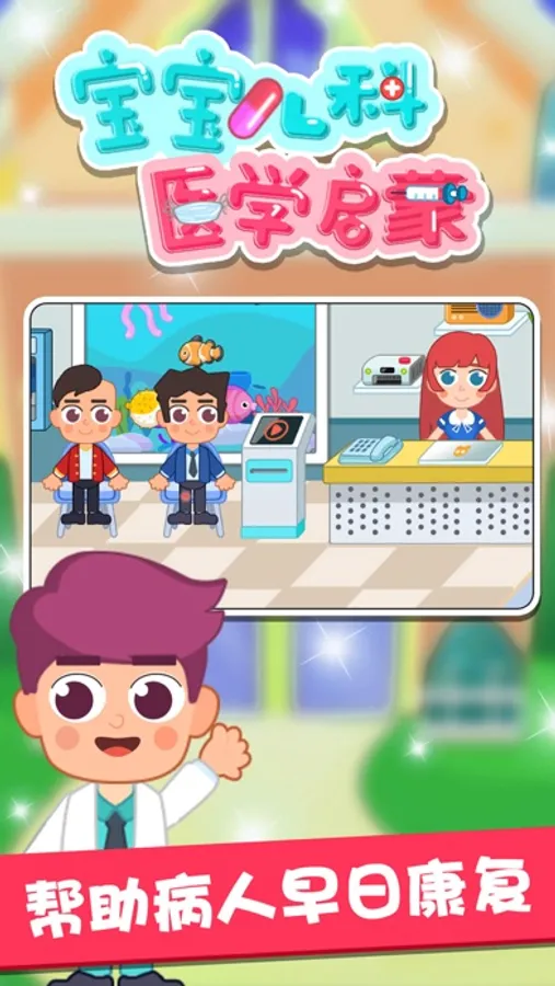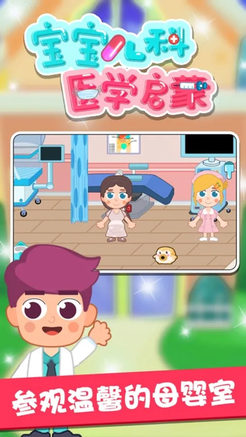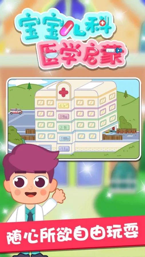 这是一款专为儿童设计的早教益智小游戏,画风可爱且自由度高,模拟真实医院场景。宝宝可以在游戏中自由玩耍,探索医院的各个角落。还能合理运用道具,帮助病人们早日痊愈,在轻松活泼的游戏氛围中锻炼了宝宝的动手能力,明白爱护身体的重要性,同时也让宝宝对于医生这个职业有一定的认知,消除对看病的恐惧感。