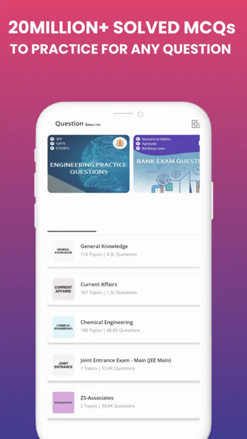 - Over 1+ million questions available for preparing 1000+ competitive exams