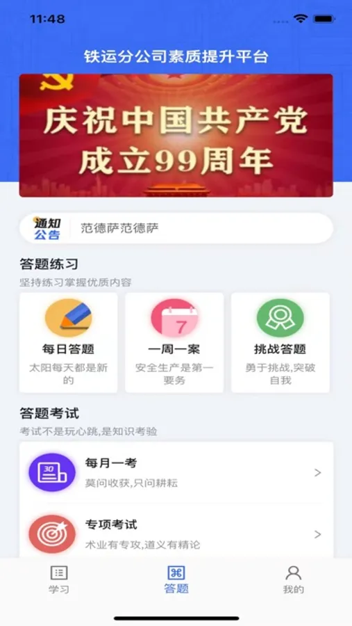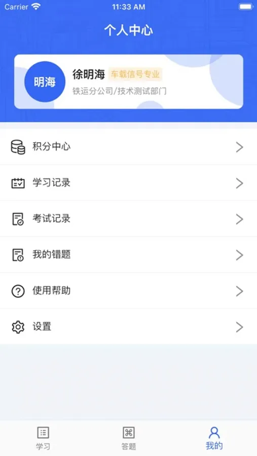 我的:个人模块、学习记录、考试排行等