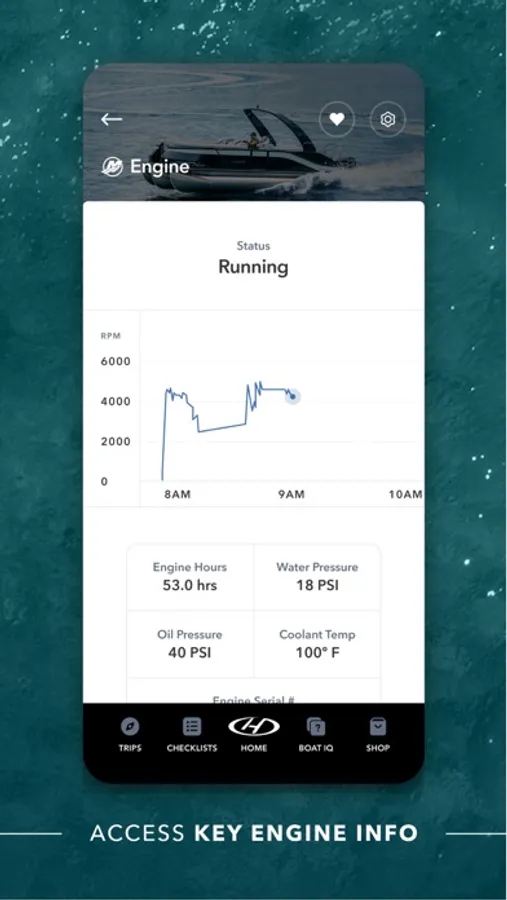 engine hours, live engine data, and alerts (available on Mercury VesselView enabled hardware). You can view maintenance information and log service and