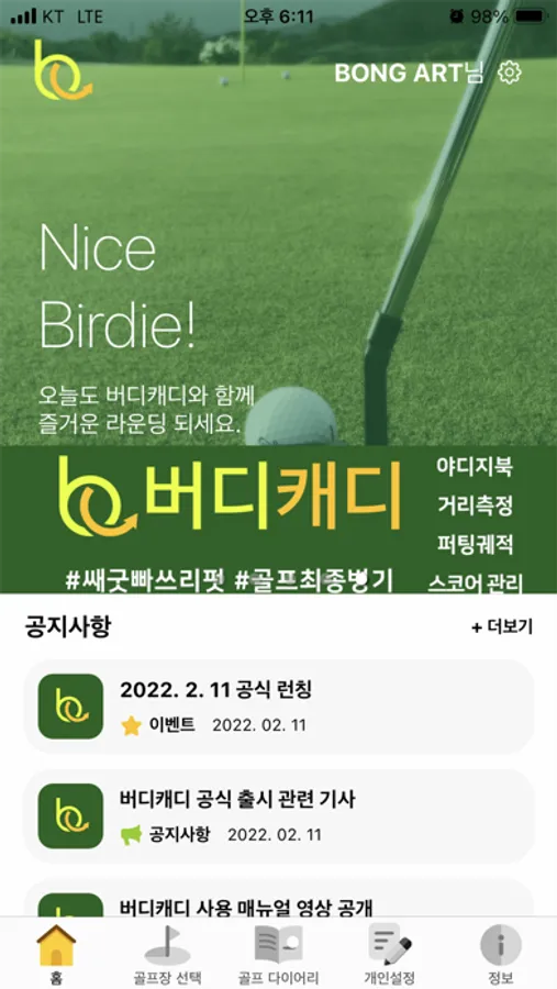 더 스마트 해진 버디캐디와 라운딩하여 스코어를 줄여보세요!