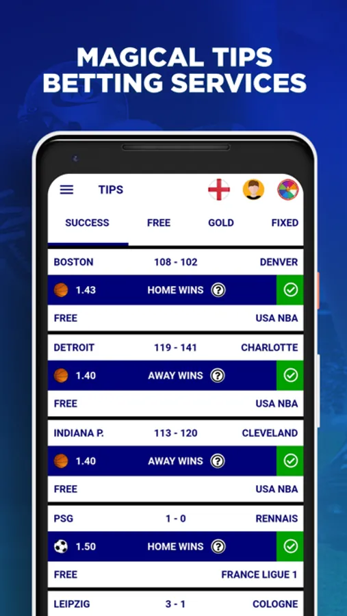 We share Football odds, soccer bets, and basketball match bet tips in our application.