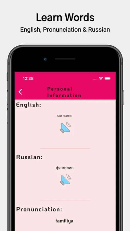 • In every lesson, you can listen to the Russian word pronunciation as well as see Russian word in english language.