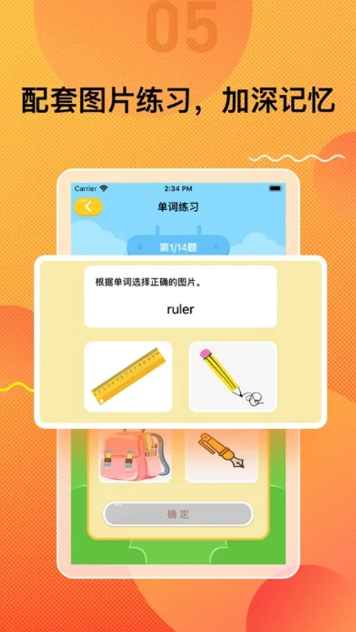 【单词练习】每个单词都有一张形象生动的图片信息,增加印象,方便快速记住单词意思
