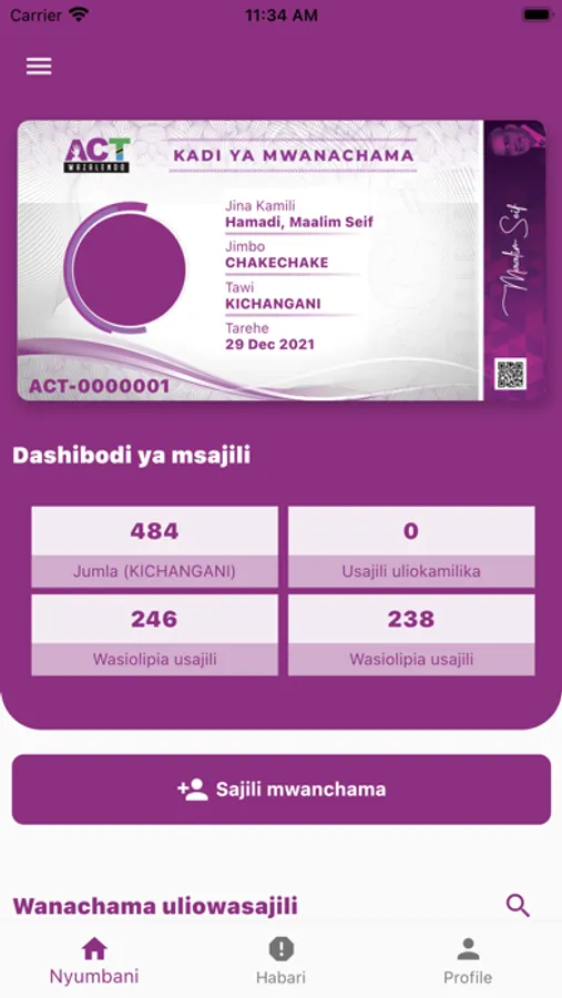 Pata kadi yako ya Uwanachama ya ACT Wazalendo kwa kutumia simu yako.