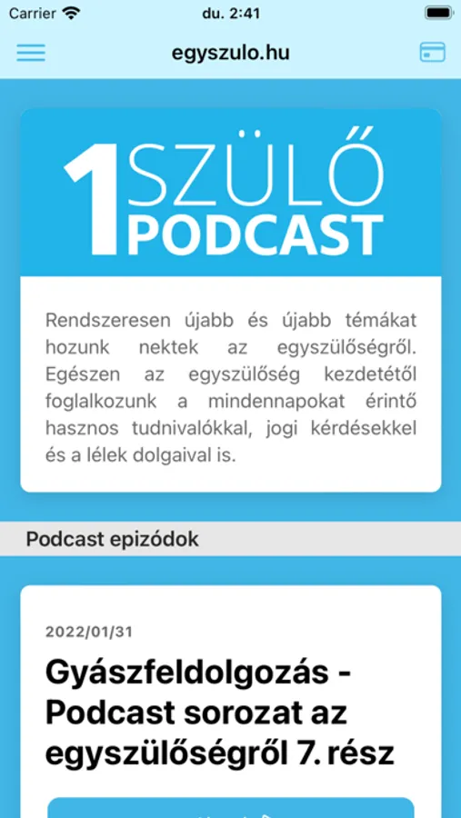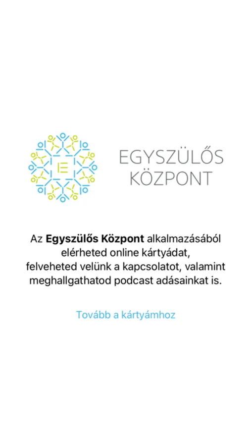 Az Egyszülős Központ alkalmazása. Alkalmazásunkból elérheted kártyád akár offline állapotban is, megtekintheted podcast adásainkat és üzenhetsz is nekünk.
