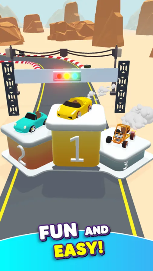 The wheels are thin, there is no body and the engine is very underpowered. But on this road, you can collect money and make your car the most powerful car in the world.
