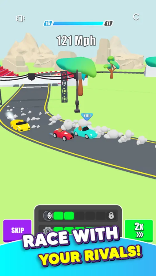 In this game, you will build a car and race it in less than 1 minute. If you want, you can speed up the race sequence or skip it and see the result directly.